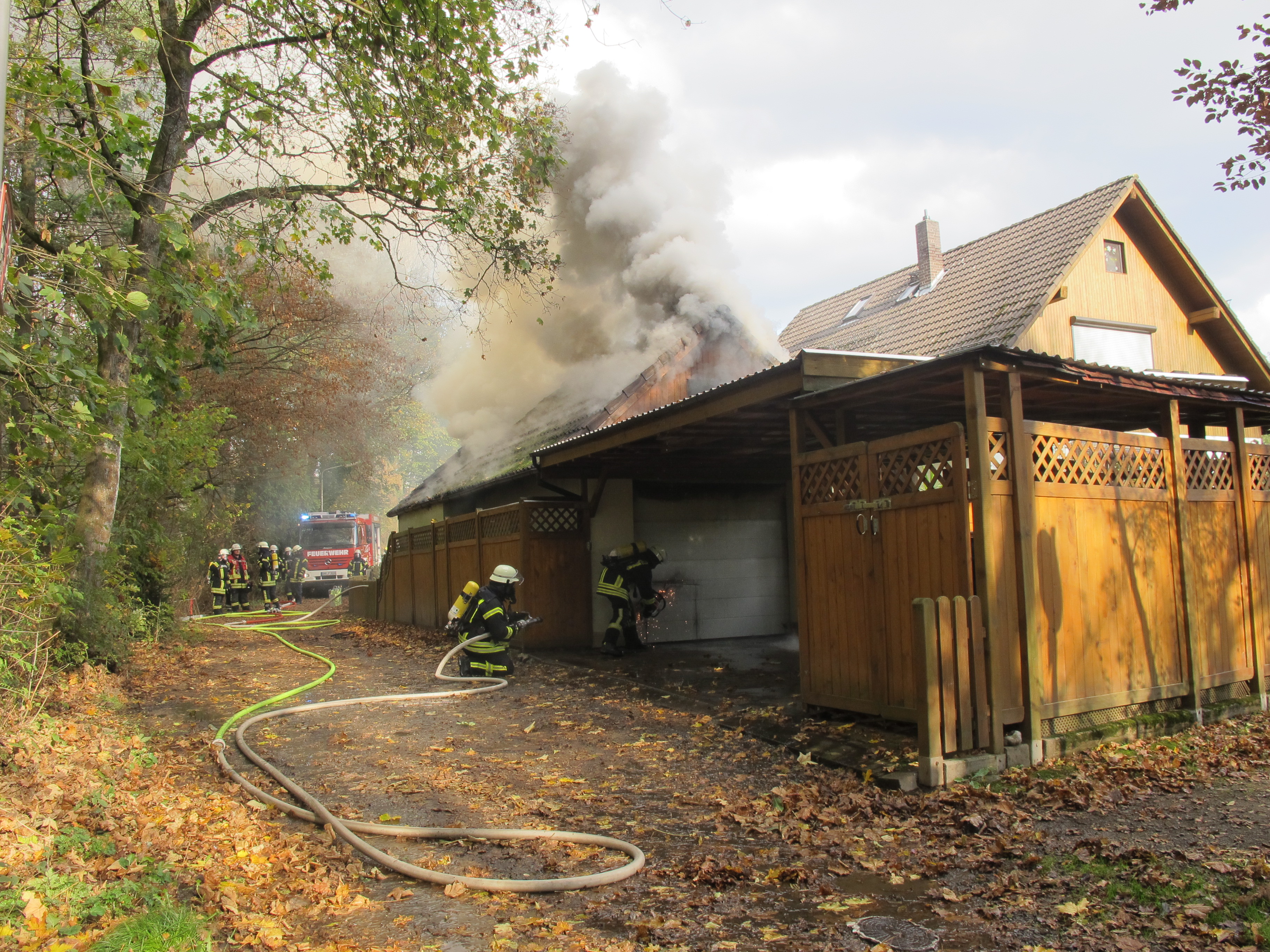 Gegen 12:50 Uhr wurde die Feuerwehren aus Herzberg, Lonau und Sieber zu einem Brandeinsatz alarmiert. In Herzberg am Kurpark war ein Nebengebäude incl. Garage in Brand geraten.