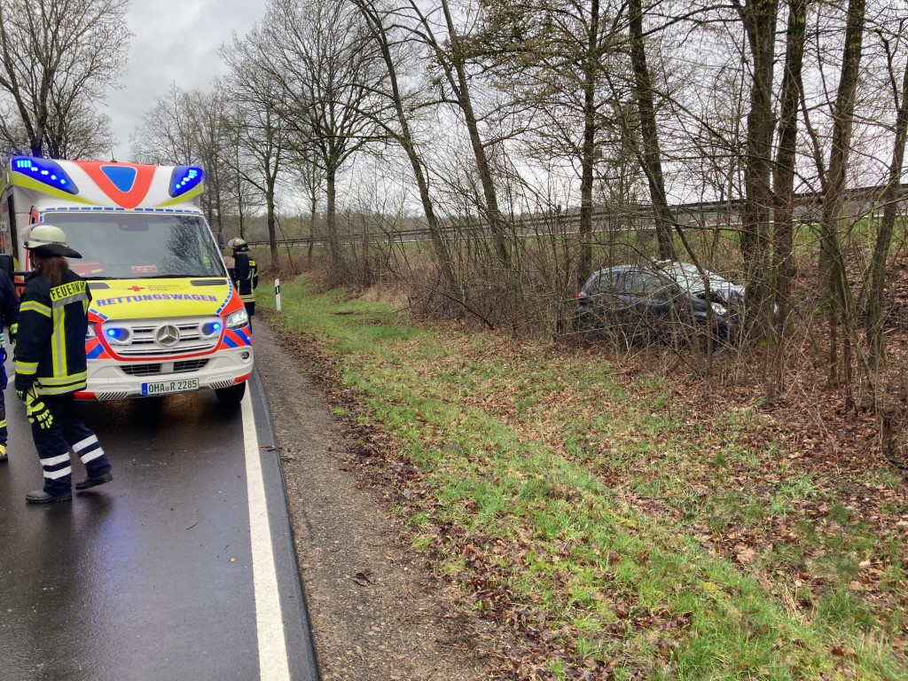 Wir wurden zu einem Verkehrsunfall auf der K427 zwischen Aschenhütte und Herzberg gerufen. Dort kam ein PKW in einer Rechtskurve nach links von der Strasse ab. Das Fahrzeug prallte gegen einen Baum und kam dort zum stehen.